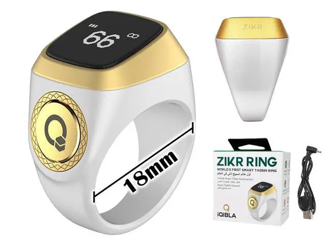 - Smart Zikr Tasbih ring counter comes with a very classic portable box in which the ringcan be placed when not in use and charged by connecting it to an adapteror computer via the USB port.