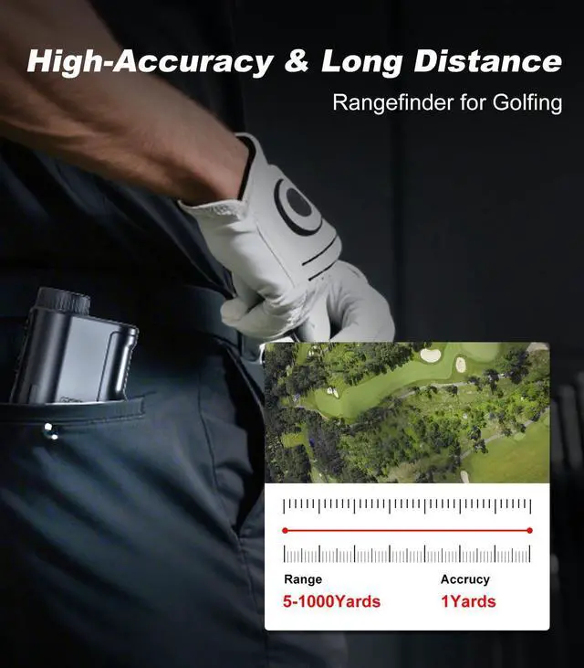 Accurate Measurement: This golf range finder can measure 5-1000 yards with an accuracy of 1 yards. Equipped with high-definition LCD display screen and 6x magnification; Clear reading even under strong light, improving decision-making efficiency