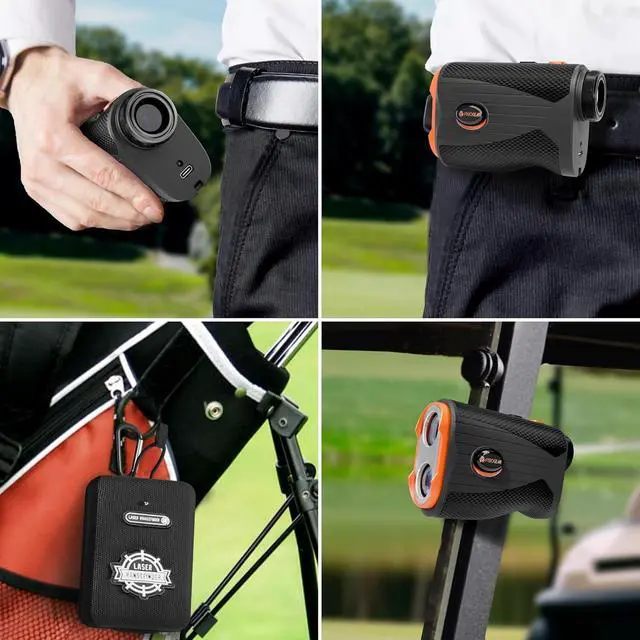 Portable & Durable: This portable golf rangefinder comes with a magnetic strip to attach it to metal objects such as clubs or carts. It also comes with a magnetic belt clip for easy carrying around. The water-resistant grade of the golf rangefinder is IPX5