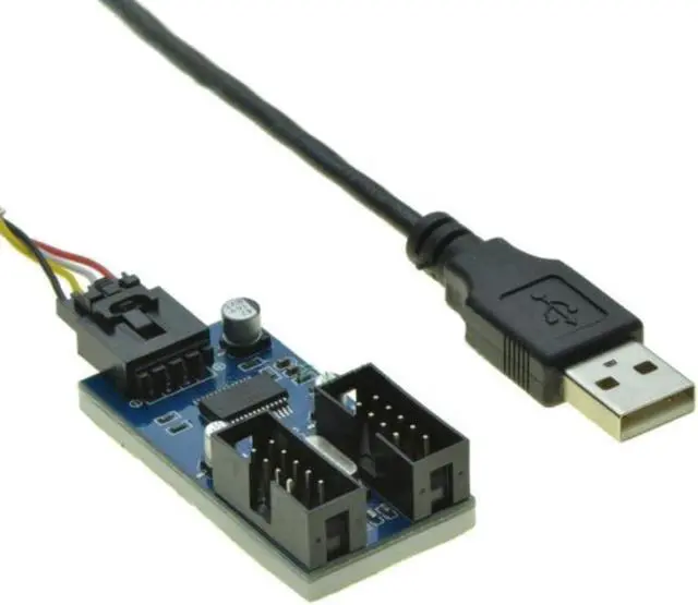 USB2.0 Male to 2 ports 9Pin Female Externsion Cable