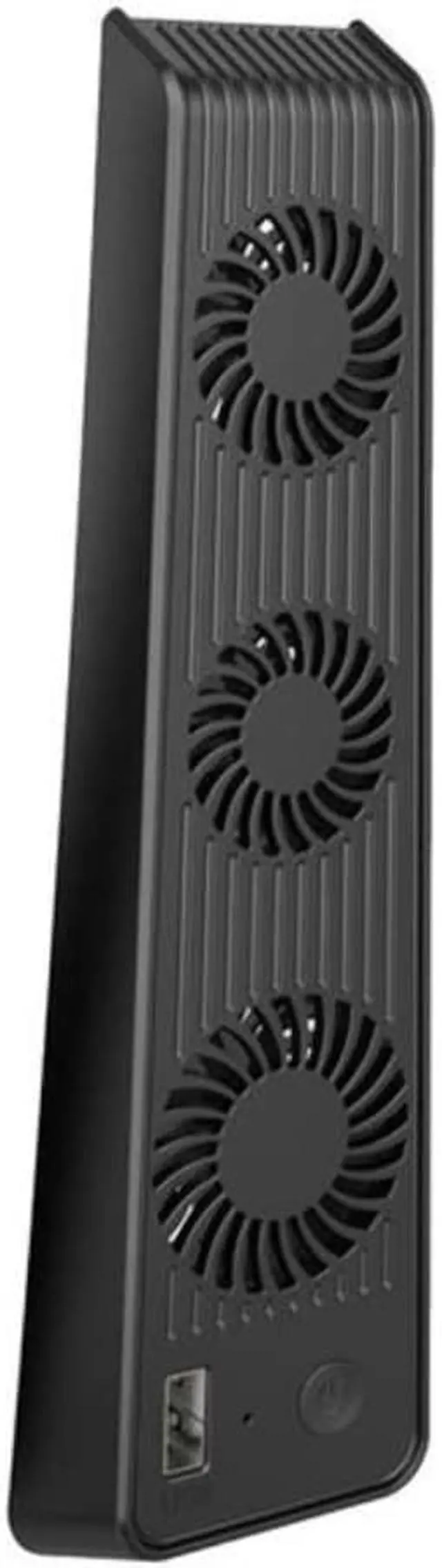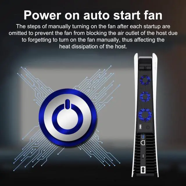 It is compatible with for PS5 game console. The blue LED light will be on to indicate the cooler working. It has three cooling fans, including a large fan and two small fans, which will effectively absorb heat from your equipment and prevent it from being damaged by high temperature.
