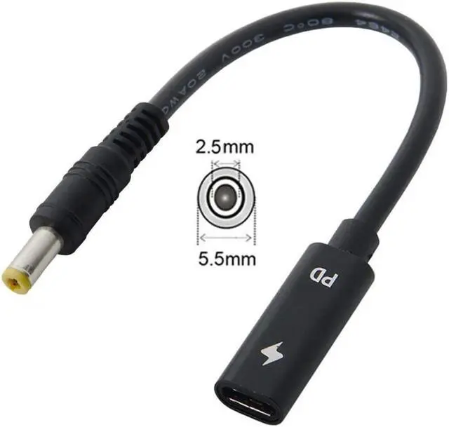 • Type C USB-C Female Input to DC Power PD Charge Cable fit for Laptop 18-20V (5.5x2.5mm)