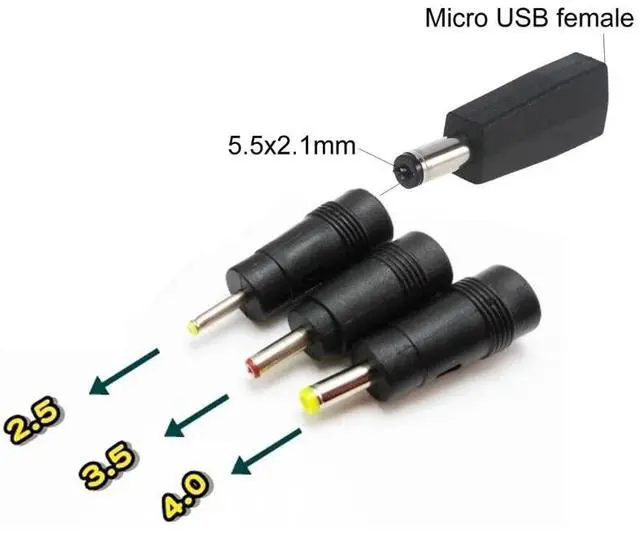 • Micro USB Female to DC 5.5x2.1mm 3.5x1.35mm 2.5x0.7mm 4.0x1.7mm Male 5V Connector Adapter Power Supply for Router Camera