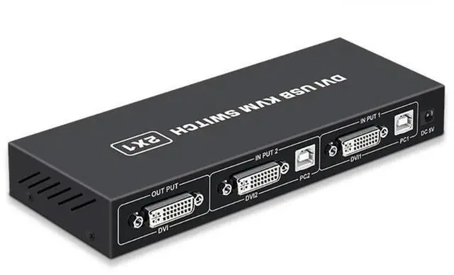 DVI KVM Switch 2-port DVI Screen Splitter 2 In 1 Out Adapter for Keyboard and Mouse Printer Computer Shared Switcher Hub