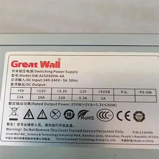 Almost UnusedPSU For GREAT WALL 250W Power Supply GW-A250SDHA-AA
