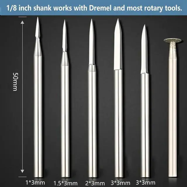 • Wood Carving Drill Bits Set for Rotary Tool 6Pcs Engraving Drill Accessories Bit Wood Crafts Grinding Tool 3mm