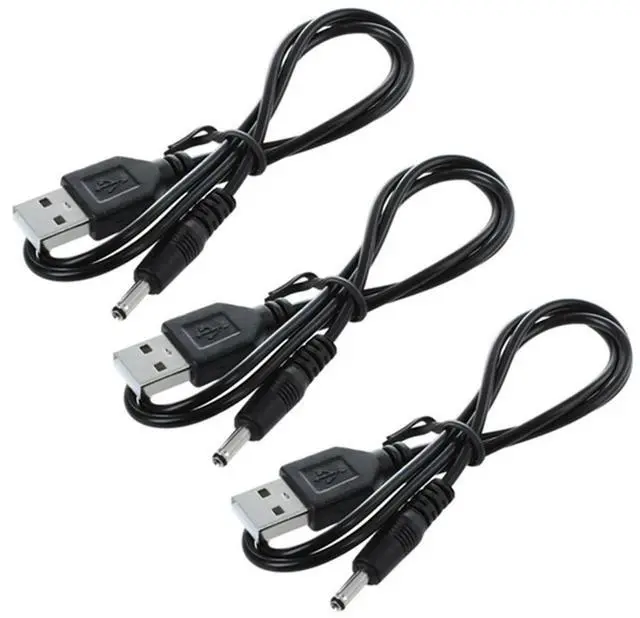 3 Pcs 3.5Mm X 1.3Mm Black USB Cable Lead Charger Cord Power Supply
