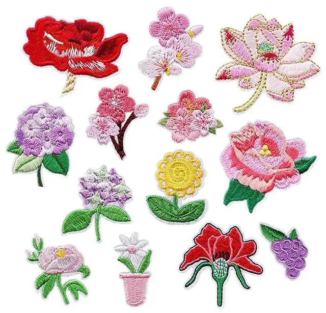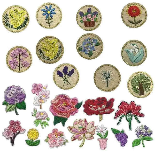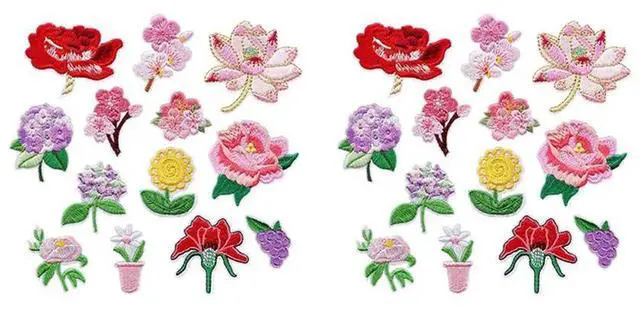 • 26 PCS Iron On Patches Flower Appliques Stickers, Flower Basket Embroidery Decorative Patches Applique Sew On Patc