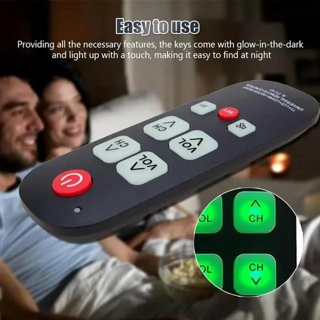 • 2X A-TV10 TV Remote For Seniors Universal Controller Simple Waterproof Remote Control With LED Light For All TV Mo