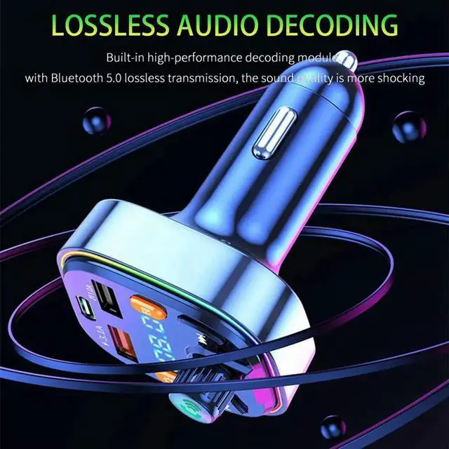 2X Bluetooth FM Transmitter For Car - Dual USB Port And Type-C PD Car Charger, 7 Colors LED Backlit, MP3 Music Pla