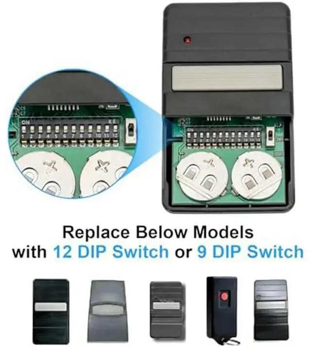 • 2X 9/12 Dip Switch Garage Door Opener Remote, 390Mhz Remote Replacement For Overhead GT912/GT90-1/G220/MAT90 Blue