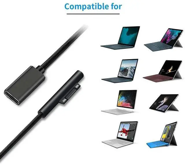 • 4X Nylon Braided For Surface Connect To USB-C Charging Cable For Surface Pro7 Go2 Pro6 5/4/3 Surface Laptop Book