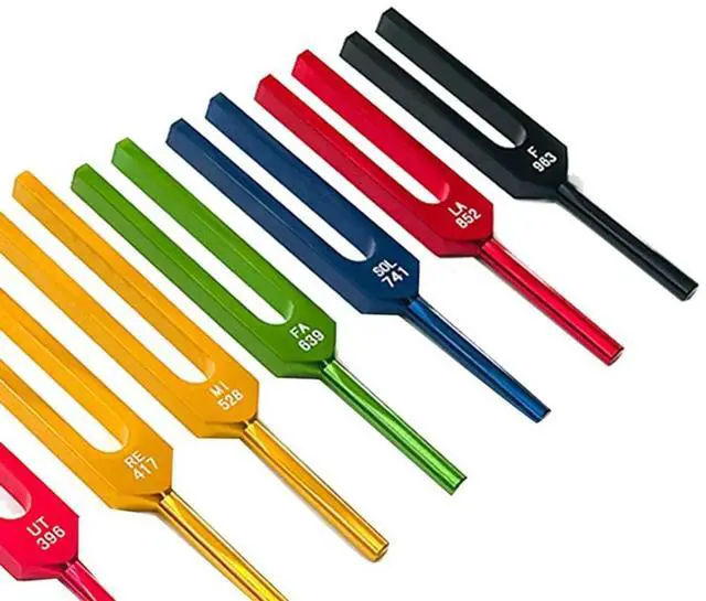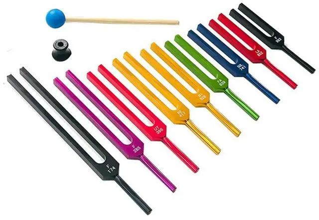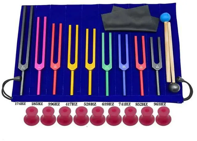 • 9 Pieces of Colorful Solfeggio Aluminum Alloy Tuning Forks, Tuning Forks for Therapy, Voice Therapy Blue
