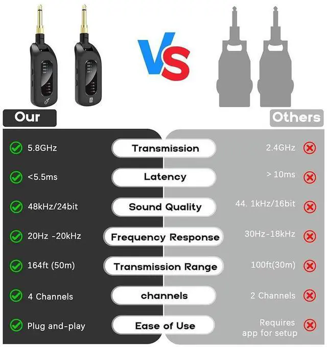 • 5.8Ghz Wireless Guitar Audio System Rechargeable Transmitter And Receiver Electric Guitar Bass Parts Guitar