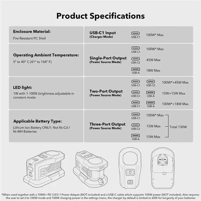 • 2X Fast Charger For RYOBI 18V ONE+ Recharger Lithium 100W Fast Charge USB Port Two-Way Charger PSC