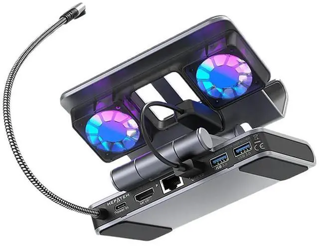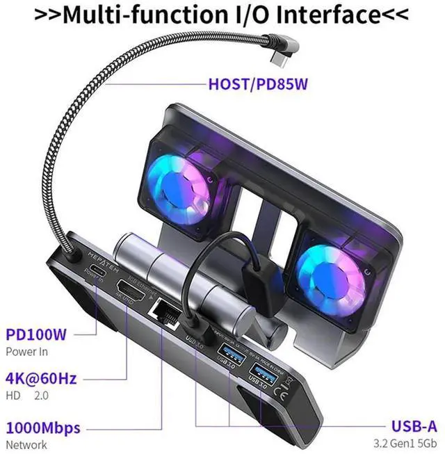 • Fans Docking Station Adjustable Stand 6-In-1 4K Steam Deck/Rog Ally X/Legion Go/Claw