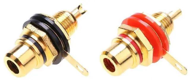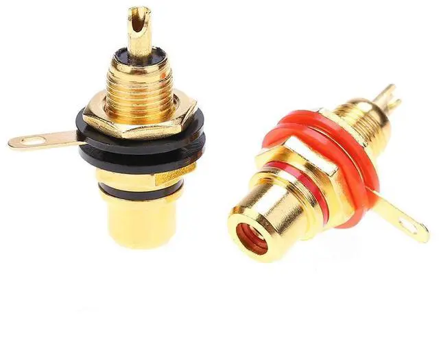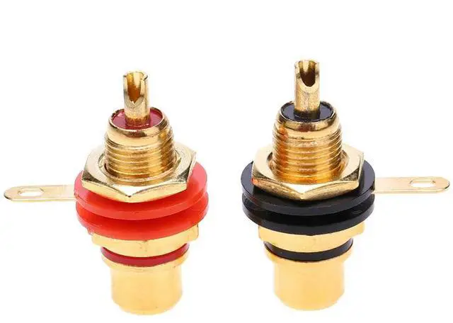 • 2pcs RCA Female Socket Connectors Chassis Panel Mount Adapters Audio Terminal Plug Zinc Alloy Gold Plating Accessories