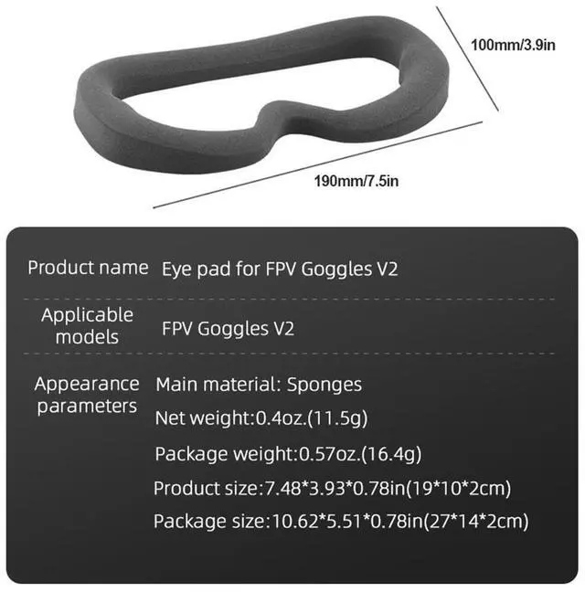 • Face Plate Replacement Skin-Friendly Face Cover Sponge Drone Flight Glasses Foam Eye Pad Soft for FPV Goggles V2