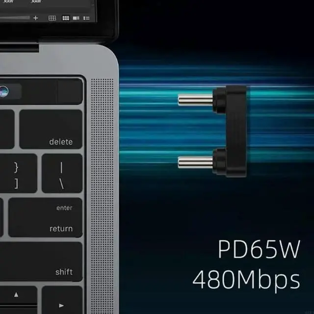 • Type-C Adapter, 180 Degree Elbow Type C Male to Male U-type Adapter 480Mbps for Laptop Tablet