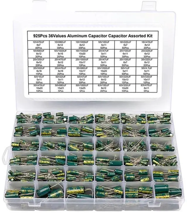 • 15/24/36 Values 225/460/925Pcs Aluminum Electrolytic Capacitors High Frequency Low ESR Aluminum Capacitors Set for DIY Projects