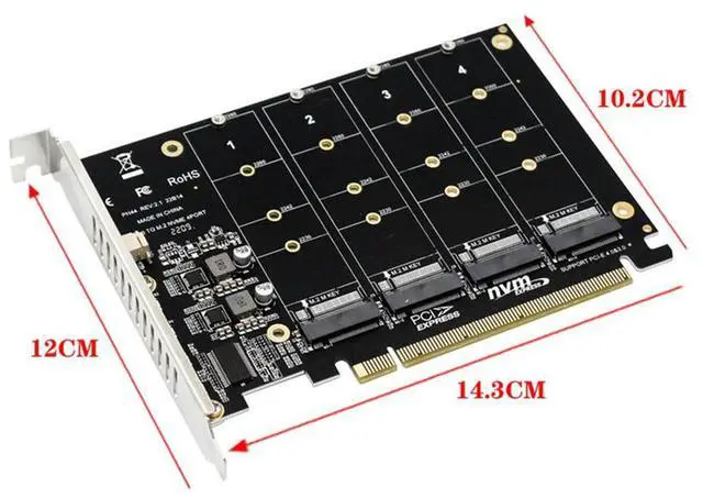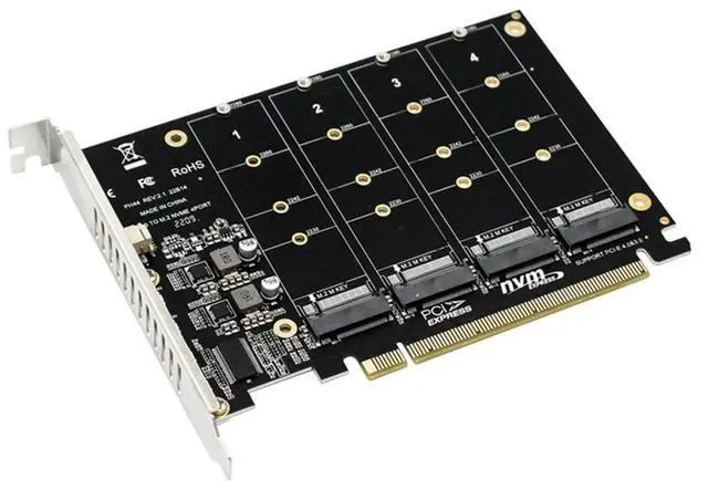 • 4 Port M.2 NVME SSD To PCIE X16 Adapter Card PCIE Split/PCIE RAID LED Indicator Support M.2 PCI-E SSD/M.2 Device NVME Protocol