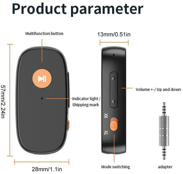 • Bluetooth-Compatible5.3 Transmitter Receiver 3.5mm Aux Wireless Audio Adapter 2 In 1 Music Adapter for TV Car Headphones