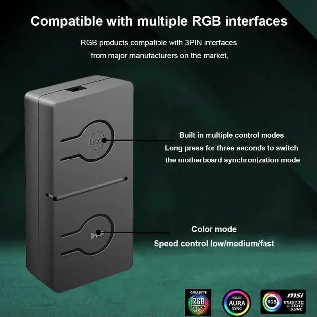 • RGB Converter Sync with Motherboard Built-in 50 Color Modes with 3-Way Splitter 5V/3pin ADD-RGB To 12V/4PIN Adapter