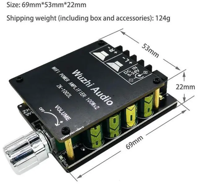 • ZK-1002L Dual Channel 2x100W Audio Power Amplifier Board Stereo Amp with Filter