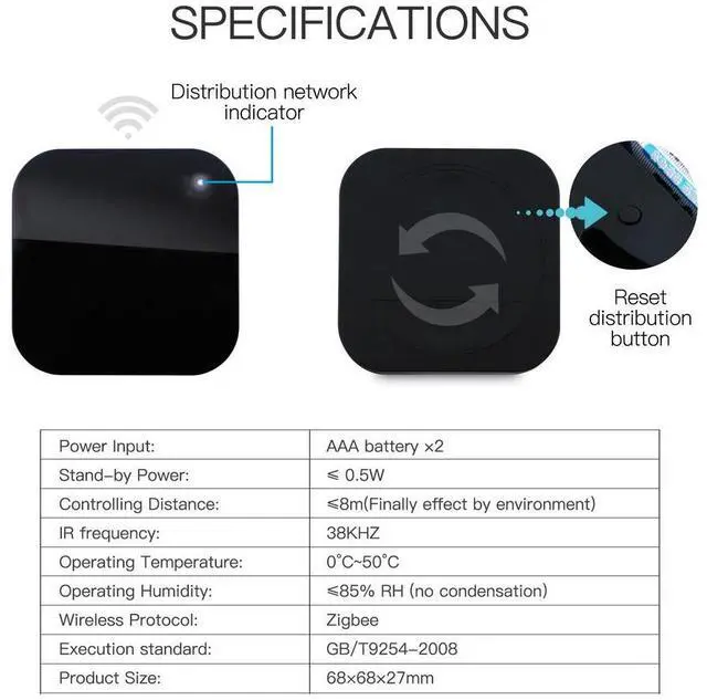 • ZigBee Universal Infrared Remote Controller Works with Alexa Google Home Air Conditioner TV IR Remote Powered by Tuya