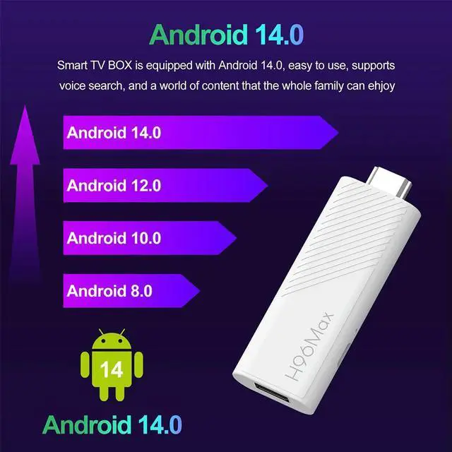 • H96 MAX H313 mini TV Stick Android14 Quad Core 6 BT5.0 4K@60fps ATV Launcher Google Voice Assistant Media Player AI TV SticK