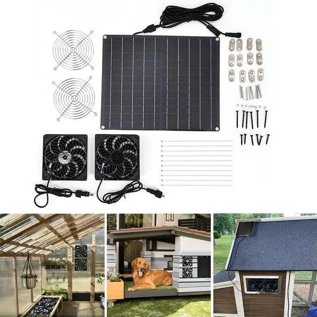 • 15W 12V Solar Powered Fan Kit IP65 Waterproof Solar Panel Exhaust Fans Regulate Temperature Solar Ventilation Fans for Pet House