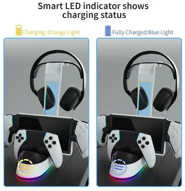 • Charging Station with Headset Holder for PS5 Controller RGB Light Charging Indicator for Portal Game Console