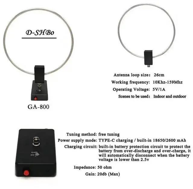 • Circular Antenna 10KHz-159MHz Radio Shortwave Antenna HF Active Loop Antenna Small Loop Shortwave Antenna for GA800 Radio
