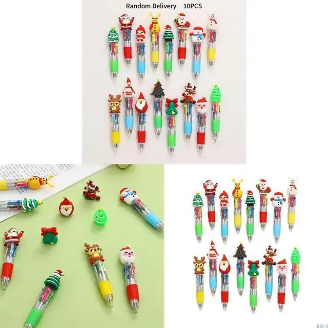 • 10Pcs Christmas Themed Multicolor Pen 4 Color-in-1 Ballpoint Pen for Journaling