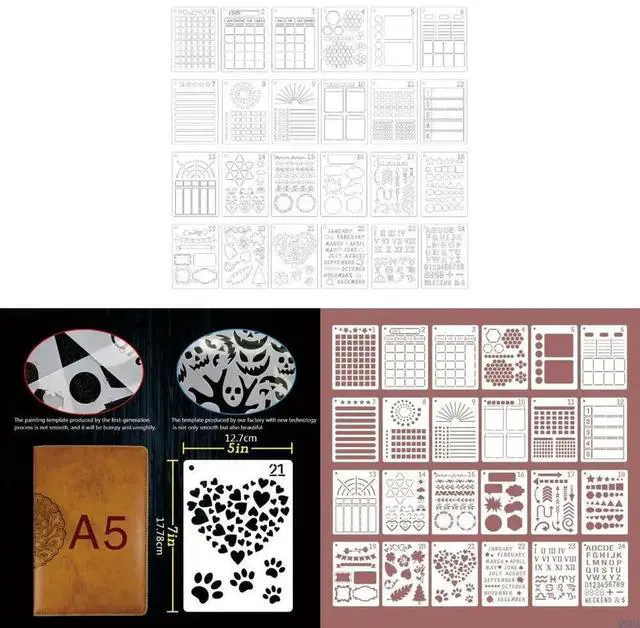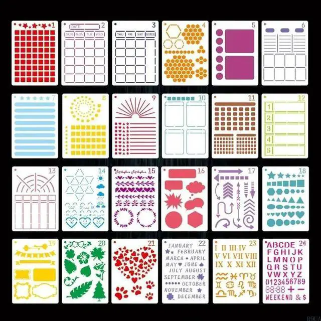 • 24PCS Planner Stencils Journal Template for A5 Notebook Scrapbook Diary Calendar