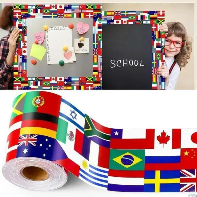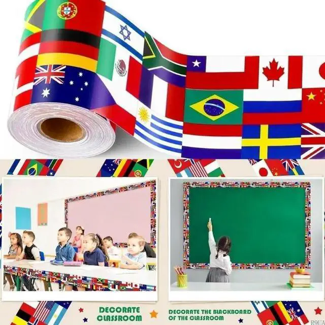 • 59ft National Flags Border Sticker 75mm Wide Border Trim Sticker forClassroom