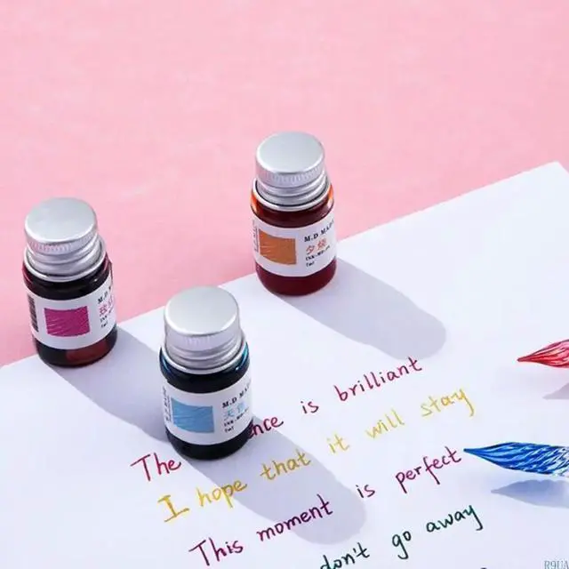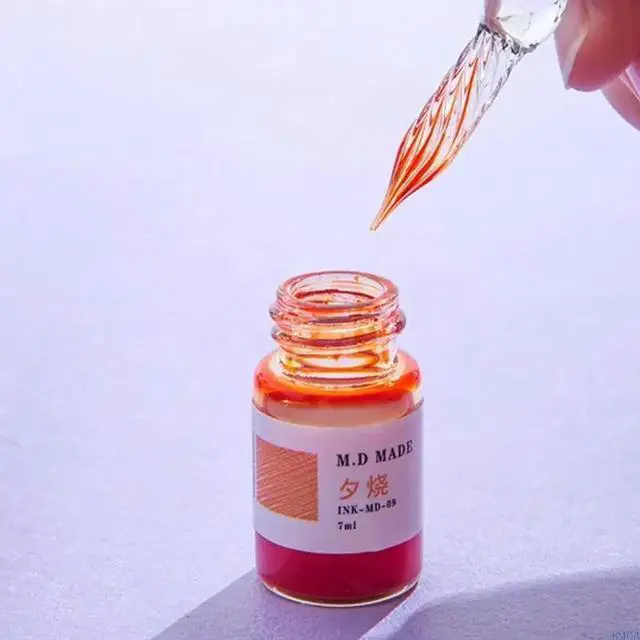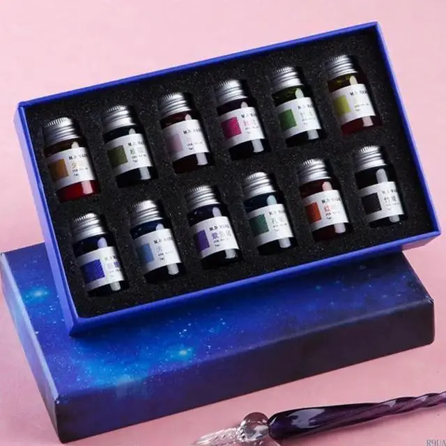 • 12 Colors Calligraphy Pen 12 Gold Powder Glass Dip Pen Inks Fountain Pen Writing Artistic