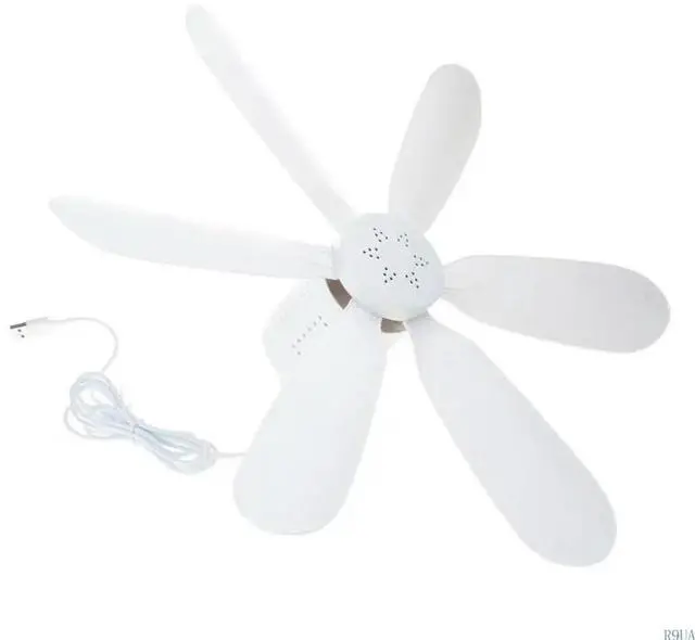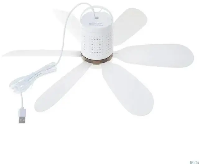 • USB Small Ceiling Fan USB5V Power Quiet Camping Outdoor Tent Hanging Fan 6Leaves Strong Wind