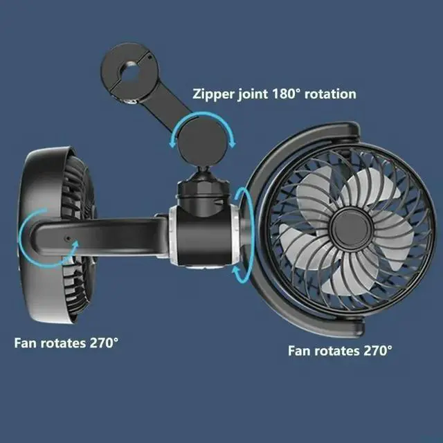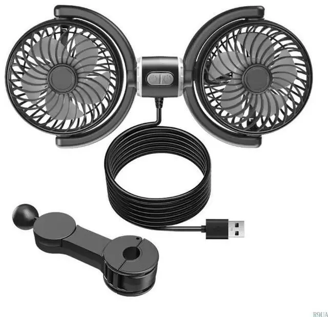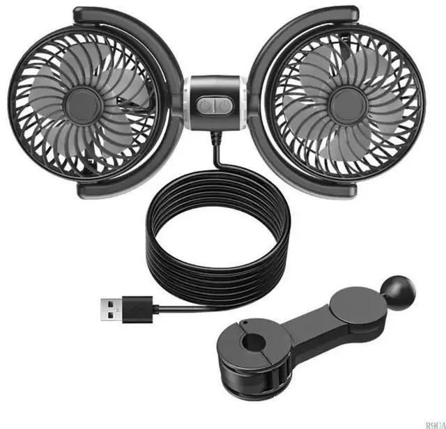 USB Powereds Two Head Car Fan with Adjustable Speeds and Angled 360 Rotation