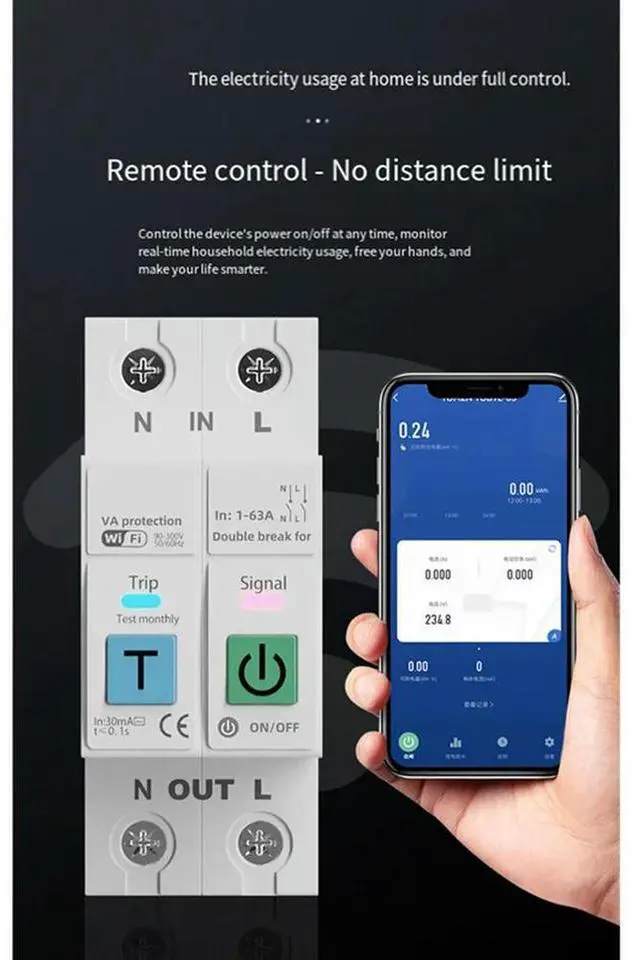 • Real-Time Timer Circuit Breaker 2P TUYA Energy Voltage Current Meter Protector Voice Remote Control Switch