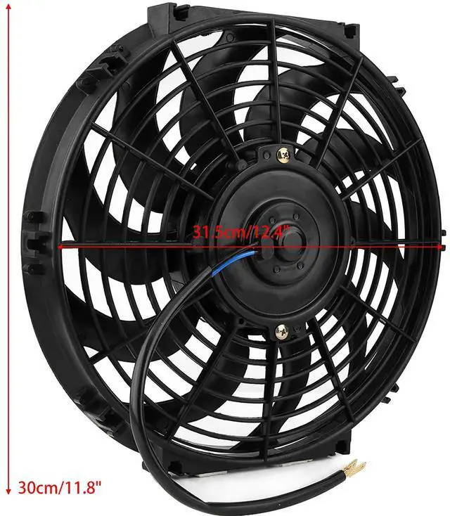 • 12 Inch Universal Car Slim Push Pull Electric Engine Cooling Fan 12V Stable Performance with Mounting Kit for Car Vehicle Engine
