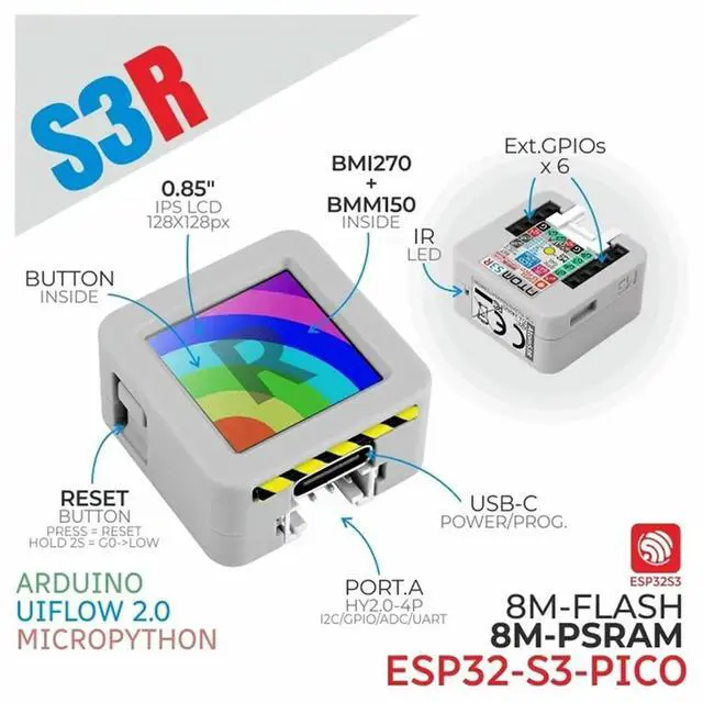 • ATOMS3R Highly Integrated Programmable Controller With ESP32-S3 0.85-Inch IPS Screen Built-In For Iot Applications