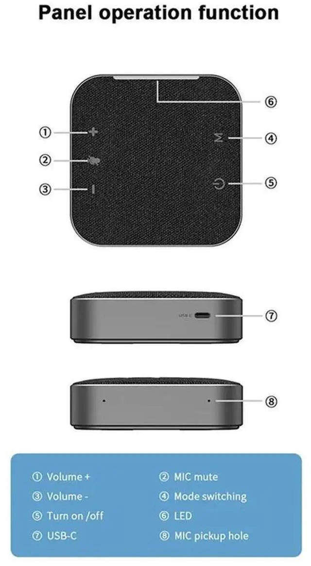 • Wireless Video Conference Speakerphone Omnidirectional Microphone USB Bluetooth For Skype Zoom For PC Laptop