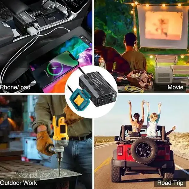 • Car Power Inverter 300W For 18V Li- AC110V/DC20V Outdoor Power Station Generator