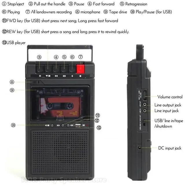 Multifunction Retro Portable Handheld Tape USB Player Cassette Recorder MP3 Music Player Built-In Bluetooth Speakers