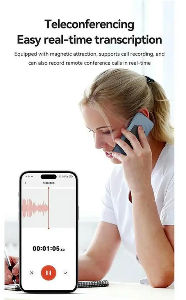 • AI Chatgpt-4 App Phone Call Activated Voice Recorder Transcribe Summarize Languagetranslation Magnet Adsorb 32GB