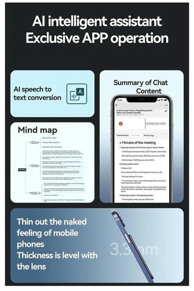 AI Chatgpt-4 App Phone Call Activated Voice Recorder Transcribe Summarize Languagetranslation Magnet Adsorb 32GB
