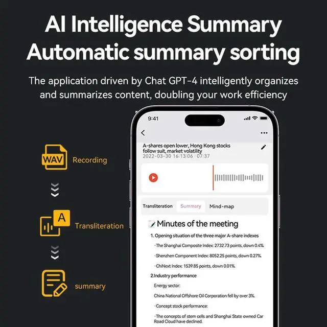AI Chatgpt-4O ligent Voice Recorder 32GB AI-Powered Voice Recorder Noise Reduction Audio Dictaphone Sound Recorder