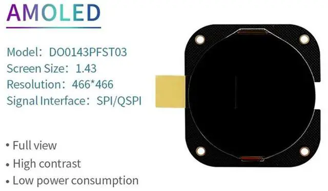 • High-Resolution 1.43" AMOLED Screen Module Set DK0143S01, 466X466 With SPI & QSPI Interfaces, For STM32 And ESP32 Systems