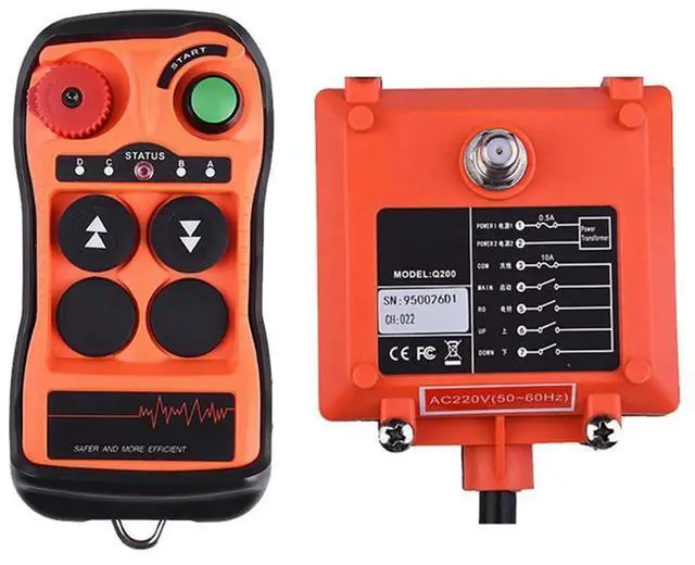• Q200 Industrial Remote Control 2-Button Waterproof IP65, Wireless Controller for Overhead Crane Industrial AC380V-Cabe